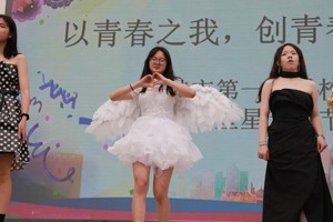 同学们穿上了自己制作的环保服装,大大小小的塑料袋、报纸、编织袋、购物纸袋等,经过巧妙绝伦的设计和制作后,变成了裙子、汉服、侠客装......伴随着动感十足的音乐节奏,同学们踏着欢快的步伐,展示着他们特有的时装秀,件件构思奇妙、创意独特。