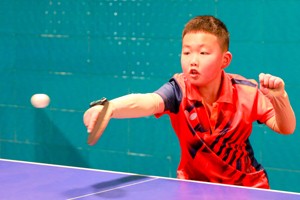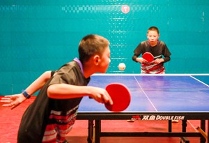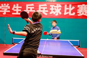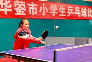 2023年12月23日,参加四川省华蓥市冬季小学生乒乓球比赛的选手在回球。(邱海鹰 于 敏 摄影报道)