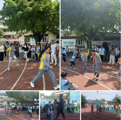 运动会上,同学们在20米袋鼠跳接力赛中默契传递、活力跃动;班级篮球比赛里团队协作、攻防尽显;跳绳项目中短绳竞速计数亮眼、8字跳绳全员协作挑战极限;武术操表演整齐划一、气势昂扬;投飞镖专注瞄准、稳健命中;投沙包、实心球蓄力挥臂、展现力量;仰卧起坐坚持到底、突破自我;两人三足绑腿同行、配合无间,各项目均展现出优异实力与拼搏风采。