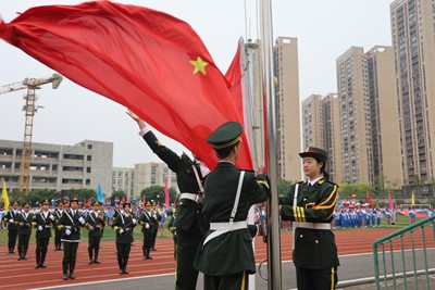 高唱国歌,壮怀激烈。开幕式表演结束后,举行了庄严的升旗仪式,鲜艳的五星红旗迎风飘扬,激励同学们奋发前行,逐梦未来。
