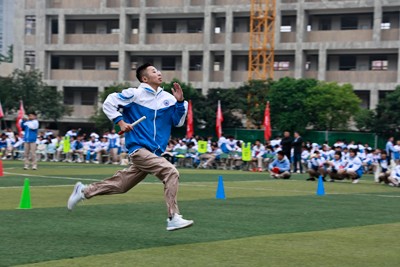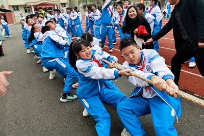 大课间跑操和做操比赛是学校艺体节的传统项目,比赛中各班整齐划一,特色鲜明,口号嘹亮。体育竞赛环节,则是力量与速度的较量。田径赛场上,短长跑运动员如离弦之箭,凭借速度与坚韧诠释着永不言弃的精神;田赛场地上,跳远运动员的每一次腾空都牵动人心,实心球划出的优美弧线展现了力量之美。而车轮滚滚、拔河比赛、接力赛、8人跳绳等集体项目,不仅考验了个人能力,更体现了团队协作的重要性,彰显了实中学子团队协作意识和能力。