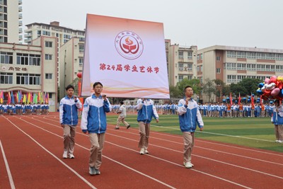 艺体节在激昂的运动员进行曲中正式拉开帷幕。国旗方队、会旗方队、彩旗队、各年级运动员代表队以及裁判员方队迈着整齐有力的步伐,精神抖擞地依次通过主席台,向我们展示真正的体育精神。