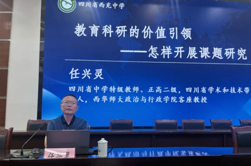 2024年4月18日,南充市教育科学研究所规划办原主任,资深教育专家任兴灵教授受邀来西充中学进行教育科研课题培训交流会。市韩君名班主任工作室、县杨斌数学名师工作室等学科名工作室成员、西充中学初高中教研组长和备课组长、该校青年教师等共同参加此次交流会。会议由四川省西充中学党委副书记、校长董文军主持。