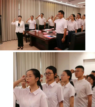 领誓环节,在张莉梅校长的带领下,全体新教职工举起右拳,庄严宣誓,立下了“为党和人民的教育事业奋斗终身”的坚定誓言。新教职工代表李一民发言,她分享了入职初心感悟与未来规划。随后全体参会人员合影留念,定格入职重要时刻。