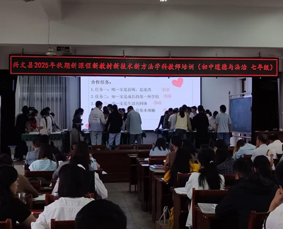 为进一步加强初中道德与法治教师对“新课程新教材新技术新方法”的研究,不断提升业务能力,推动全县思政课建设不断发展,9月22日,兴文县组织了七年级道德与法治“新课程新标准新教材新技术新方法”培训活动,本次活动由兴文县初中道德与法治教研员喻晓兰主持、兴文县大河初中承办,全县七年级学科教师、近三年新入职的学科教师共计40余人参加了此次培训。