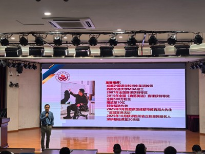 为进一步夯实教师专业素养,破解教学实践中的成长难题。2025年10月17日,大邑县实验中学特邀成都外国语学校英语学科名师、全国中小学英语课堂教学竞赛特等奖获得者龙瑾老师,开展以《基于教学的教师专业成长》为核心主题的“龙叔叔讲英语”专题培训活动。大邑县实验中学党总支副书记、校长宋仕平、执行校长王维荣、师培中心主任贾登位、全校英语教师及联盟校花水湾学校、悦来学校骨干教师参与培训,现场学习氛围浓厚。