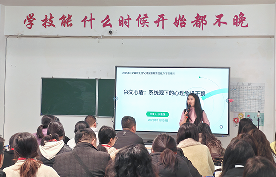 为深入贯彻落实省、市关于学生心理健康工作的指示精神,切实筑牢县域中小学心理健康教育防线,着力培养一支专业过硬、实操能力强的中小学心理健康教育骨干教师队伍,全面提升县域心理健康教育工作质量。11月23日至29日,兴文县2025年秋期中小学心理健康教育师资培训在四川兴文人力资源服务产业园成功举办。全县50名专职心理教师及75名班主任分批次参与系统性培训。