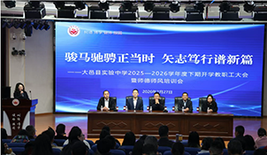 新学期伊始,万象更新。为进一步提升教职工法治素养、安全意识、师德师风及教学科研能力,推动学校高质量发展,2026年2月27日下午,大邑县实验中学2025—2026学年度下期开学教职工大会暨师德师风培训会在学术厅隆重召开。全校教职工齐聚一堂,以饱满的热情和昂扬的姿态共同开启新学期的征程。