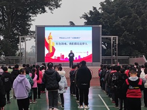 教育是国之大计、党之大计,承担着立德树人是根本任务。为深入贯彻落实习近平总书记关于“大思政课”的重要指示批示和在中国人民大学考察时的重要讲话精神,坚持不懈用习近平新时代中国特色社会主义思想铸魂育人,广安市思政教育特色学校——华蓥市占云小学于2月20日组织全校师生上了一堂意义深刻的大思政课。该课由占云小学书记邹可贵主讲,课上邹可贵同志结合习总书记关于教育的讲话和重要指示,号召全体师生“听党话、跟党走,努力成为堪当民族复兴重任的时代新人”。