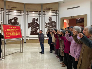 老同志们参观到第五展厅,驻足在刻写有毛泽东同志所著《为人民服务》全文展板前,不由自主地朗读起来:“我们的共产党和共产党所领导的八路军、新四军,是革命的队伍。我们这个队伍完全是为着解放人民的,是彻底地为人民的利益工作的……。”大家动情地议论起来。老党员张安德说:“啥叫为人民服务?正如毛主席所说彻底地为人民的利益工作就是很好的为人民服务。”老党员胡素珍腿脚不便,仍坚持参观完所有展厅,她说:“我们过去在讲台上认真教书育人,无私奉献,很好地践行了为人民服务;现在虽年过古稀,我们也要影响身边人,不能忘记我们党的这一宗旨!”大家纷纷表示,党的二十大坚持以人民为中心的发展思想,体现了党的理想信念、性质宗旨、初心使命,也是对党的奋斗历程和实践经验的深刻总结。在今天奋斗新时代、奋进新征程中,我们老共产党员一定要大力弘扬张思德精神,坚持全心全意为人民服务的根本宗旨,践行以人民为中心的发展思想,努力为实现人民美好生活而发挥余热。随后,大家回到正厅张思德铜像前,列好队,展开鲜艳的党旗,举起紧握的右拳,重温入党誓词:“我自愿加入中国共产党,拥护党的纲领……永不叛党。”庄严的誓言在大厅中回响。