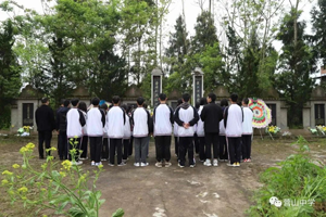 青山处处埋忠骨,苍松翠柏照英雄。在苍松掩映,庄严肃穆的骆市陵园,全体师生整齐列队,向烈士纪念碑行鞠躬礼默哀三分钟,表达对先烈的崇高敬意和深切悼念。参加祭扫的师生齐唱雄壮激昂的国歌,感悟爱国情怀。