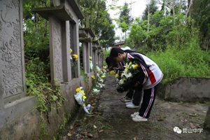 宣誓完毕后,全体师生依次有序走到烈士墓前向革命先烈敬献鲜花,表达对英烈的深切哀悼和无尽缅怀之情。