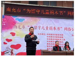 南充市委宣传部机关党委书记汤彧琳同志宣布:南充市“为留守儿童捐本书”网络公益活动正式启动。