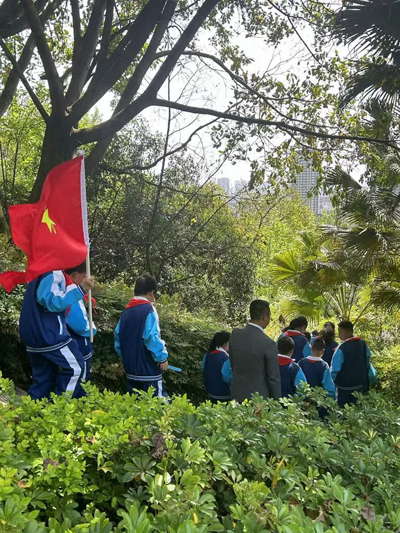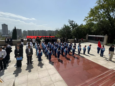 队员们满怀敬意,高举队旗,踏入这片革命烈士安息的土地。将追思先烈们不朽的伟绩,继承他们的革命遗志,并向他们敬献鲜花。