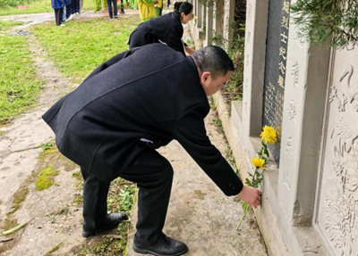 宣誓结束后,同学们手捧鲜花,怀着崇敬的心情,有序地走向烈士墓碑。一朵朵鲜花,寄托着同学们对先烈们的无限哀思;一个个鞠躬,饱含着对先烈们的崇高敬意。在墓碑前,同学们轻轻放下手中的鲜花,然后深深地鞠躬,有的同学眼中还闪烁着泪花。这些鲜花,就像是连接着过去与现在的纽带,让同学们更加真切地感受到了先烈们的伟大精神。随后,大家拿起早已准备好的祭扫工具,认真清扫墓地周围的落叶和灰尘,让烈士安息的地方更加整洁。在这个过程中,没有一个人嬉笑打闹,所有人都怀着一颗虔诚的心,小心翼翼地擦拭着墓碑,仿佛在与先烈们进行一场无声的对话。他们用自己的行动,表达着对先烈们的敬重和感激之情。