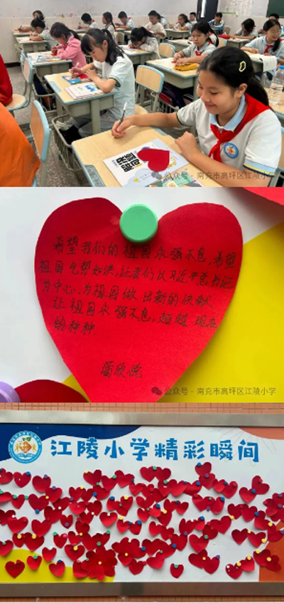 南充市江陵小学将以此次活动为契机,持续深化爱国主义教育,通过开设红色主题课程、组织实地研学、开展主题班队会等形式,让红色教育系列化、常态化。学校将建立校园红色文化长廊,定期举办"红色故事会""红歌传唱"等活动,把红色基因融入日常教学,引导学生在实践体验中传承革命精神,筑牢理想信念之基。(南充市高坪区江陵小学)