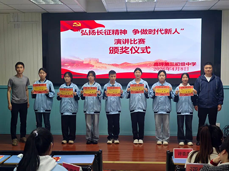 一场演讲,一次洗礼;一次传承,一生践行。此次主题演讲比赛,不仅为同学们搭建了展示自我、锻炼成长的舞台,更让红色基因融入青春血脉,让长征精神成为三中学子砥砺前行的精神动力。未来,四川省南充市高坪第三初级中学将持续深耕红色教育,以丰富的活动为载体,引导全体学子以长征精神为指引,在成长路上勇毅前行,争做有理想、有本领、有担当的新时代好少年!(四川省南充市高坪第三初级中学)