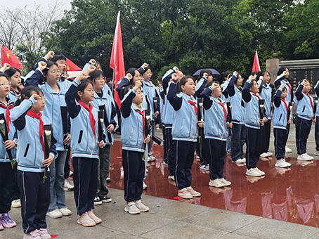 来到烈士陵园,全体师生肃立,奏唱中华人民共和国国歌,激昂的歌声在陵园上空回荡。随后,为革命先烈默哀,表达对英烈的深切缅怀与无限敬仰。学生代表登台发言,抒发对先烈的追思与崇敬,立志以英烈精神激励自我,奋勇前行。副校长易文在讲话中寄语同学们,要铭记革命先烈的丰功伟绩,传承和弘扬英烈的爱国主义精神,将红色基因融入血脉,把哀思化为动力,努力成长为有理想、有道德、有文化、有纪律的新时代少年。