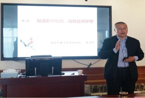 首先,资深教育专家蒋光明老师作了《锻造教学能力,成就名师梦想》专题分享,听了蒋老师的讲座,深受启发,他的讲座深入浅出,既有理论高度,又有实践指导意义。一个成功的教育者,一定是一个善于更新知识的学习者。作为教师,应具有科研精神: