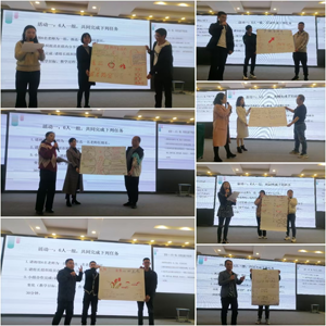 下午,来自翠屏区师培中心的张泽全老师作了《课标引领 笃学精教》讲座,张老师从“课标框架、课标变化、教学启示”三个方面展开剖析,并分析了2022年中考试题、展示了翠屏区课堂大比武的教学设计和课后作业设计,具有很高的参考价值。在“课标变化”环节,张老师组织分组研讨活动,指导参培教师选一节课例分享新课标前后的教学变化,并制作海报集体展示。老师们充分地进行组内讨论,碰撞出思维的火花,团结合作,出谋划策,最后分组上台展示作品成果,解说设计思路,进一步提升了培训学习的效果。