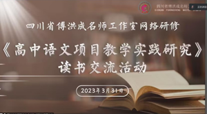 草长莺飞春光美,交流学习共成长。为不断推进项目式教学实践,提升工作室教师的教育教学水平,打开项目式教学新视野,指导今后的语文教学实践,2023年3月31日,四川省傅洪成名师工作室在线上举行了《高中语文项目式教学实践研究》读书交流活动。