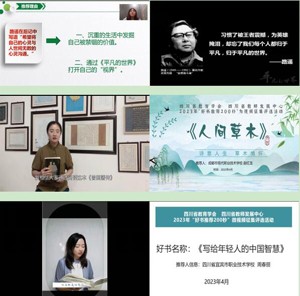 书有千秋各其美。汪芳工作站郭梦洁老师推荐的《不跪着教书》回荡着“言他人之所不敢言”的勇气;曾令玫工作站邬家洪老师推荐的《给教师的36条建议》展示了教师成长的多条路径;李静工作站阳建琼老师、张峡工作站刘盈老师在各自解读的基础上介绍经典著作《平凡的世界》,在平凡中孕育希望;明安丽工作站明安丽老师推荐的《呼兰河传》再现萧红视角的嘲讽与批判;李勇生工作站的雷丹蕊老师介绍《活着》——被苦难蹂躏的生命,选择真实的活着;隆红梅工作站罗静莉老师、陈晓英工作站肖云老师《苏东坡传》从不同角度展示一代文豪的“诗意与浪漫”的一生;易娜工作站杨嫣老师推荐的《当呼吸化为空气》以医者视角诠释“生命、医学和医学伦理”;王桃工作站的王桃老师推荐《做更专业的教育》提出“教育的终极目标,是培养幸福的人”;童玲老师推荐的《黑色棉花田》可以帮助孩子塑造一个正直勇敢而又不莽撞的三观;王伦万工作站李秋梅老师推荐《曾国藩传》客观评价了晚清四大名臣之一曾国藩传奇的一生,通过一人,窥一个时代;向此梁工作站蒲育芳推荐的《文化苦旅》倡导大家一起读书,一起行路;陈晓英工作站赵红玉老师的视频《人间草木》以草木光阴,道出人间五味;郑秀辉工作站的周春丽老师《写给年轻人的中国智慧》从“精进”“原则”“得到”“个性”为切入,阐释了当今人们的学习、工作、交际、修养、情感等问题;邓丽霞工作站兰家美老师推荐的《人间小满》引领令人人们如何探视自己的内心,去热爱生活;宋江彬工作站的米肖佳老师的视频《万物有时》旨在号召大家热爱学习、热爱生活,拥有一颗赤子之心。