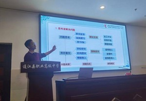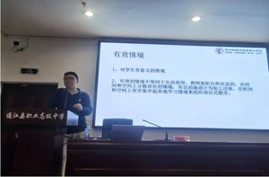 成都市礼仪职业中学陈亚军老师作《项目式教学三大关键词:情境、探究、构建》专题讲座。陈老师从情境、探究、建构三个维度深入探讨了项目式教学模式,让在场的老师看到一位青年教师的锐气。