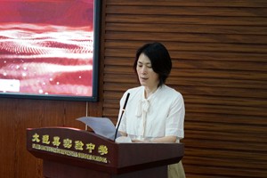 四川省教育科学研究院、高中化学教研员、课题总负责人马红艳,为学校宣读课题立项通知书并颁发证书。张家智校长接受证书。