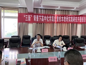 为进一步促进学校教研工作,不断提升教师科研能力。2023年5月31日上午,大邑县实验中学召开了人民教育出版社课程教材研究所“十四五”课题《“三新”背景下高中化学教师核心素养发展的实践研究》的子课题《“三新”背景下高中化学高质量校本教研的实践研究》开题报告会。四川省教育科学研究院、高中化学教研员、课题总负责人马红艳、武侯区教科院发展所教研员蒋波、成都市武侯区教科院教师发展中心副主任、武侯区中学化学教研员彭明良莅临指导。学校校长张家智、教学分管副校长赵焱、校长助理邹正道以及学校部分领导与课题组老师参与开题报告会。