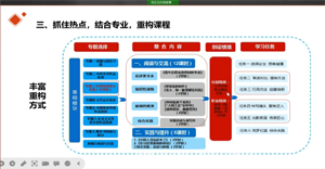 戴志敏老师结合近年全国职业院校技能大赛教学能力比赛的情况,指导参会教师认真阅读比赛文件,精心备赛。她指出,参赛教师要研究大赛方案,精准对标备赛;立足课程标准,开展专题教学;抓住热点,结合专业,重构课程;注重创新特色。她还建议大家要潜心备战省赛决赛,专心专注做好比赛。