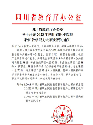 在四川省2023年职业院校教师教学能力比赛中,工作室青年成员胡琴琴老师负责的团队作品进入省级决赛名单。