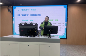本次职教高考升学经验专题教研活动分为两个阶段。第一阶段,易娜工作站青年成员张兰老师以《笃定前行,一职有你》为题,交流升学考试备考经验。