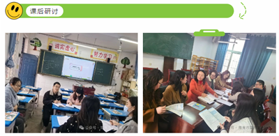 课后,听课老师针对几位老师的课堂教学展开评课讨论,分别从教学设计、教学方法、教学手段、教学实施和教学评价等方面对他们的课堂教学进行了剖析,既有对课堂教学的认同和赞美,也有中肯的评价和建议。大家在相互交流中碰撞出智慧的火花。