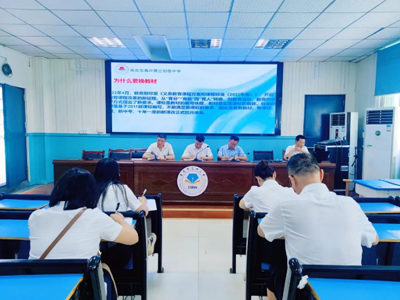 师欲善其教,必先研其材。为进一步落实新课标理念,帮助教师理解和把握新教材,提高新教材实施质量,提升教育教学水平,发挥教材铸魂育人作用。9月18日上午,南充市高坪第三初级中学开展了以“聚焦新教材 赋能促成长”为主题的教研工作安排会暨新教材使用交流会。活动由副校长杨虎主持,学校党总支记张应龙、校长李伦、副校长邓刚,教科室主任赵青春以及全体教研组长参加。