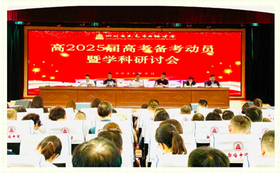 为了精准把握新高考方向,科学高效地进行高三复习备考,确保2025届高考取得优异成绩,四川省南充市白塔中学于9月22日上午召开2025届高考备考动员暨学科研讨会。全体校级领导、教务处、教科室、高三年级办相关负责人及高2022级全体教师参加会议。会议由学校党委书记廖茂荣主持。