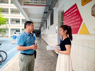 为加强教育联盟工作,不断提升学校办学水平,促进城乡教育教学均衡发展。2025年6月19日,成实外教育集团课程中心校长孙继良、质量中心校长谢剑英到大邑县实验中学开展督导调研工作。专家组一行主要以听、看、谈等形式,对课堂教学、作业管理、心理健康、教学新技术应用和艺体工作等方面进行了全面、深入、细致的调研和指导。