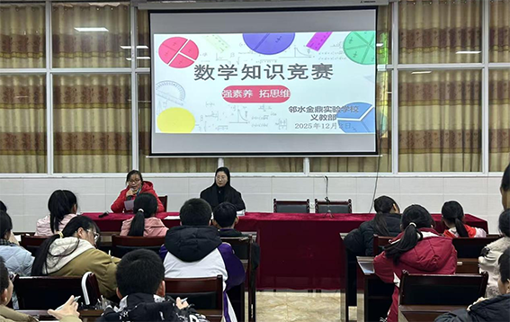 为深入落实国家“双减”政策,积极践行学校“奋起二次创业,打造人文金鼎”的发展主线,深耕数学学科核心素养培育,搭建学生展示才华、比拼思维的优质平台,邻水金鼎实验学校义教部于2025年12月3日在德馨楼成功举办数学知识竞赛活动,让数学学习在竞技中焕发别样活力。