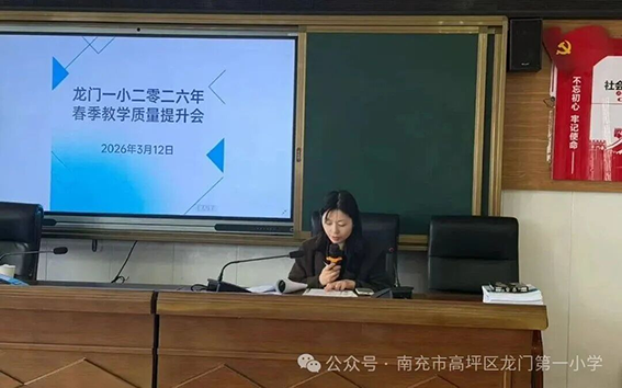 春意渐浓,时光正好。为进一步提升学校教育教学质量,总结过往经验,明确新学期奋斗目标,2026年3月12日下午,南充市高坪区龙门第一小学全体语数英教师齐聚四楼会议室,召开了2026春季学期教学质量提升会。本次会议既是一次对上学期教学工作的复盘总结,更是一次凝聚智慧、激发思考的深度交流。