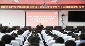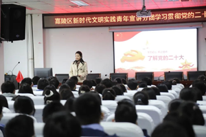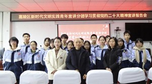 青春心向党,奋进新征程。12月1日上午9时许,嘉陵区新时代文明实践青年宣讲分团学习贯彻党的二十大精神宣讲报告会在南充市李渡中学一教学楼五楼会议室隆重举行。本次宣讲活动由南充市中学政治任仔东名师工作室宣讲分团承担,嘉陵区宣传部、共青团嘉陵区委领导到会指导。宣讲活动旨在推动党的二十大精神进校园、进班级,入脑入心,其主题为“青春献礼二十大 强国有我新征程”。南充市中学政治名师工作室主持人、南充市李渡中学副校长任仔东主持会议,高一年级180余名师生代表全程参加。