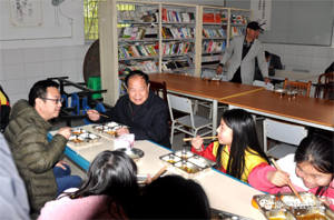 3月1日,新学期开餐第三周。自贡市“免费午餐”项目推进机制联席会议召集人、市扶贫“两会”会长钟长安,自贡市“免费午餐”项目联络办公室主任、市扶贫“两会”副会长陈建新和副会长汪小铭一行到富顺县永年镇沙罗九年制学校督察“免费午餐”项目实施情况。