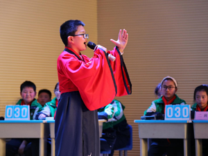 本次诗词大会还增设了两个特别环节,一是邀请了特邀嘉宾,语文组的梁华山、舒耕、李鑫三位老师,在比赛的过程中,为同学们讲解介绍诗词背后的故事;二是邀请了助演嘉宾在比赛中穿插表演:五年级八班谢知臻演唱的《南安军》,让我们感受到了文天祥誓死报国的决心;周艳老师不仅现场教大家行古礼,还为大家带来了朗诵《陋室铭》;六年级十班刘梓然、唐子明、贺博彦表演的朗诵《满江红》,铿锵有力,气势非凡。这两个环节的增设,更是为整个活动锦上添花。