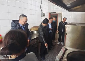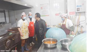 在工作间里,孙家怀一行察看了工人对炊餐具、加工刀具、抹布、毛巾以及其它日常用品,进行分类、分区、定位置放,标识标牌清晰醒目,对工人辛苦劳作表示慰问,希望今后更加努力,为学生服好务,必须做到“严格食材查验,规范加工流程”。