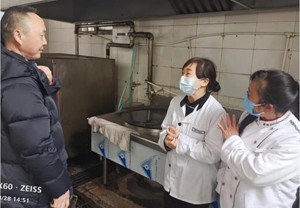 在兰草小学校长办公室,孙家怀一行汇报了公司运行情况,充分感谢学校的大力支持。兰草小学校长何大鹏介绍了工人的工作情况,重点介绍了“十大关口”的管控,即盯紧食谱关、测算关、查验关、入库关、储存关、出库关、加工关、消毒关、卫生关、留样关十大关口的管控,同时对工人也提出了严格要求。