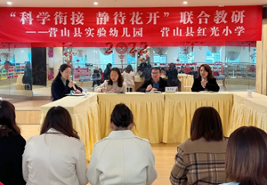 为帮助幼儿顺利过渡和适应小学生活,更好地贯彻落实教育部《关于大力推进幼儿园与小学科学衔接的指导意见》和《营山县推进幼小科学衔接攻坚行动实施方案》文件精神,2023年3月23日下午,营山县实验幼儿园有幸邀请到营山县红光小学校长杜辉、副校长何婷、教导主任陈丽、办公室主任周维骏、年级组长何玲、杨桓及红光小学教师代表到营山县实验幼儿园北城园区开展主题为“科学衔接? 静待花开”的联合教研活动。参加本次活动的还有实验幼儿园领导、班子成员、全体班主任以及实幼部分家长代表共计30余人。