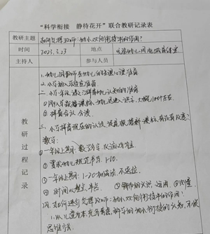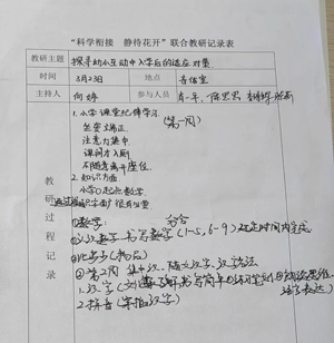 通过此次联合教研,搭建校、园老师之间相互了解、交流研讨的平台,不仅为幼儿园与小学之间提供了知识共享、经验共享和情感传递的机会,也为幼小衔接工作提供了新的方向和思路。接下来,幼儿园将继续与小学携手共研教育教学方法,按阶段分层次把幼小衔接内容整合进幼儿园日常教育目标中,循序渐进做好衔接工作,力争为幼儿健康发展贡献自己的力量。