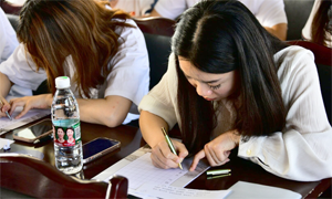 在钢笔字比赛中,笔尖“沙沙”地划过素笺白纸,吟唱出一曲曲曼妙旋律,一撇一捺均展现出当代青年的风骨风采。