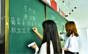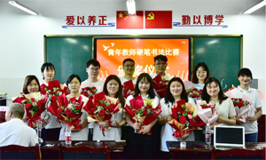在粉笔字比赛中,参赛的青年教师们在讲台上屏息运气,按照各自抽规定签书写的内容,全神贯注,用力于指尖,用粉笔在上黑板一笔一划书写着美丽的青春。