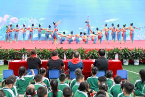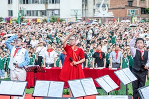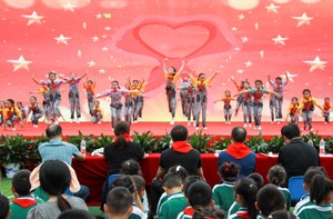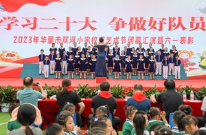 2023年5月31日,四川省华蓥市双河小学举行“学习二十大,争做好队员”校园艺术节闭幕汇演暨六一表彰活动,全校师生汇聚一堂,载歌载舞庆祝六一国际儿童节。