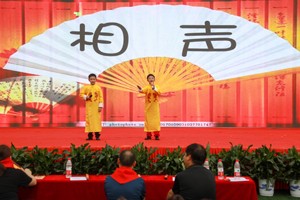2023年5月31日, 四川省华蓥市双河小学的少先队员在“学习二十大,争做好队员”校园艺术节闭幕汇演暨六一表彰活动上表演相声。