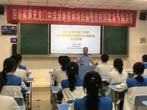 为进一步加强四川省南充龙门中学教职工、学生及家长反电信网络诈骗和防校园欺凌的意识和能力,拓宽宣传教育覆盖面,8月31日晚,该校特邀龙门派出所张贵明副所长作反电信网络诈骗暨防校园欺凌专题讲座。